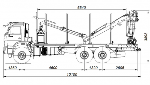 Автомобиль-сортиментовоз с ГМУ состоит из следующих основных сборочных единиц: шасси автомобиля KAMA3-43118 и навесного технологического оборудования, включающего в себя надрамник, ограждение кабины, коники, кожухи грязезащитные, лестницу, электрооборудование, гидроманипулятор и гидрооборудование.